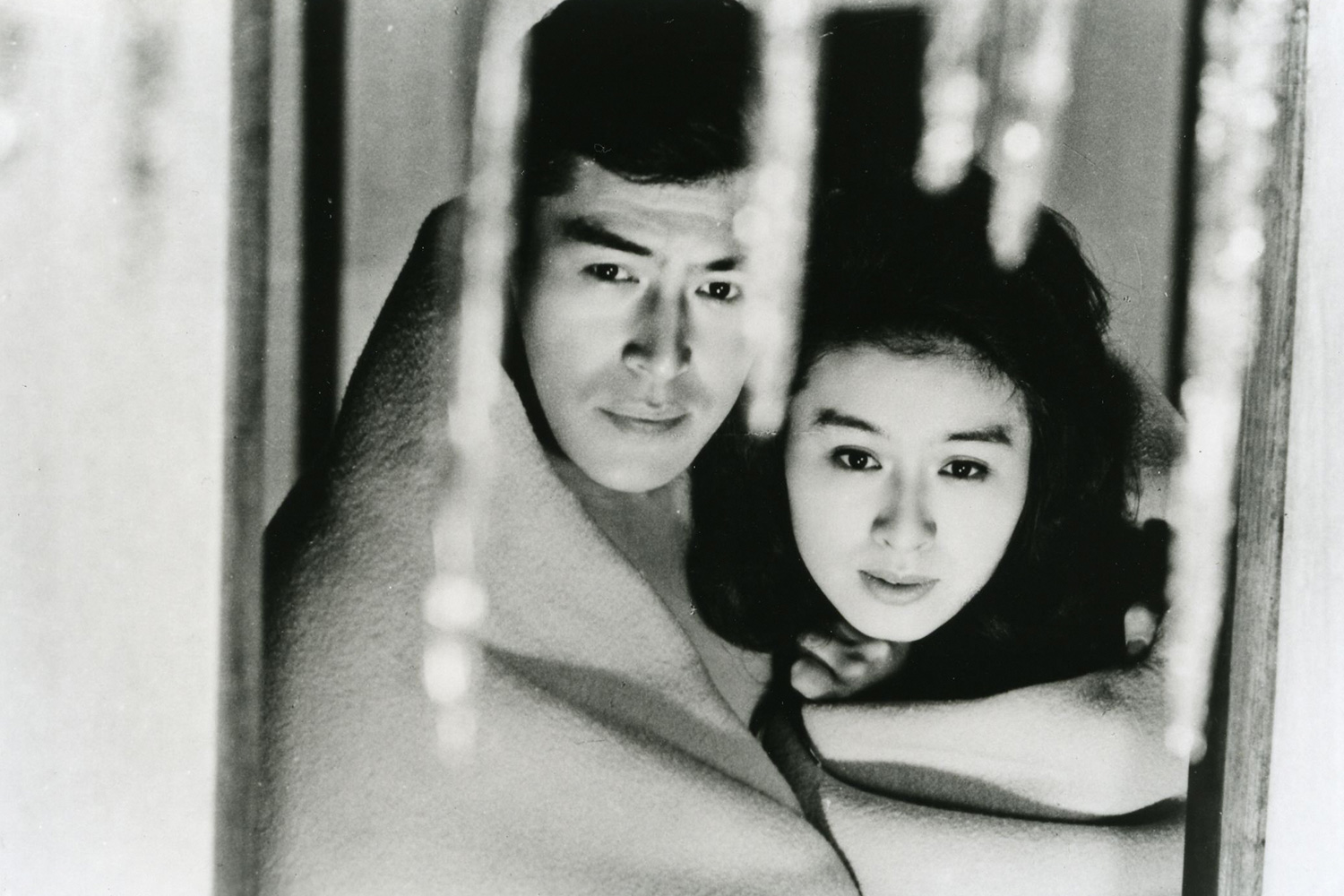 特に印象深いのは、結婚初夜のシーン。哲郎の「雪国では裸で寝るんだよ」という言葉に、恥じらいながらも応える志乃。雪の夜、馬橇(ばそり)の鈴の冴(さ)えた音だけが響くなか、裸のまま一枚の丹前にくるまり、寄り添う二人の姿は、観る者の心に深く沁(し)み渡ります。
